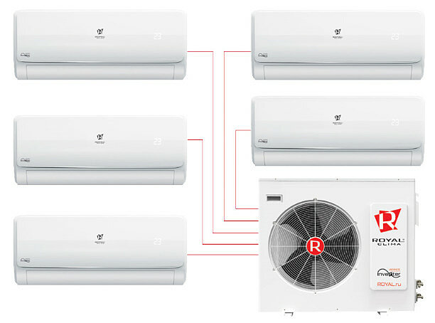 Два — три внутренних модуля могут работать с одним наружным, оснащенным несколькими портами подключения, компрессорами и теплообменниками. Такая СКВ зовется мульти-сплит-системой, ее уличный блок заметно больше и дороже обычного.