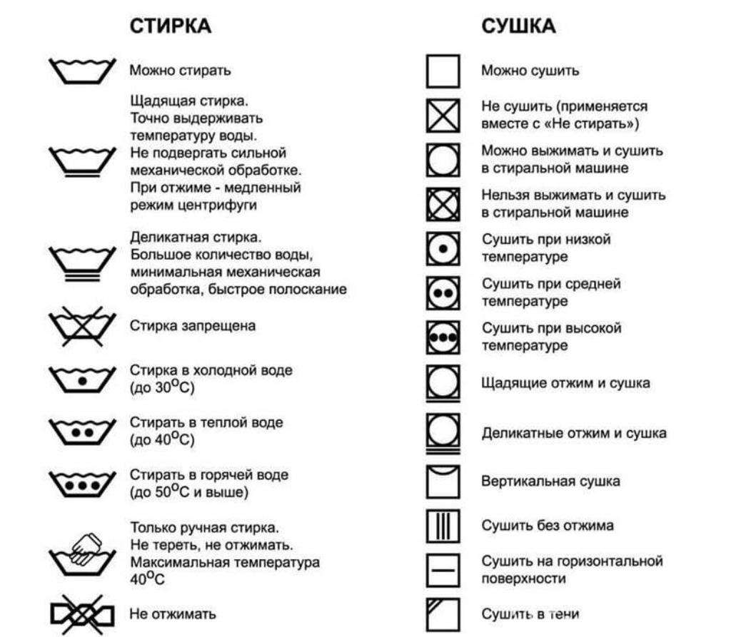 Тип ткани | Режим стирки | Температура воды | Способ сушки |