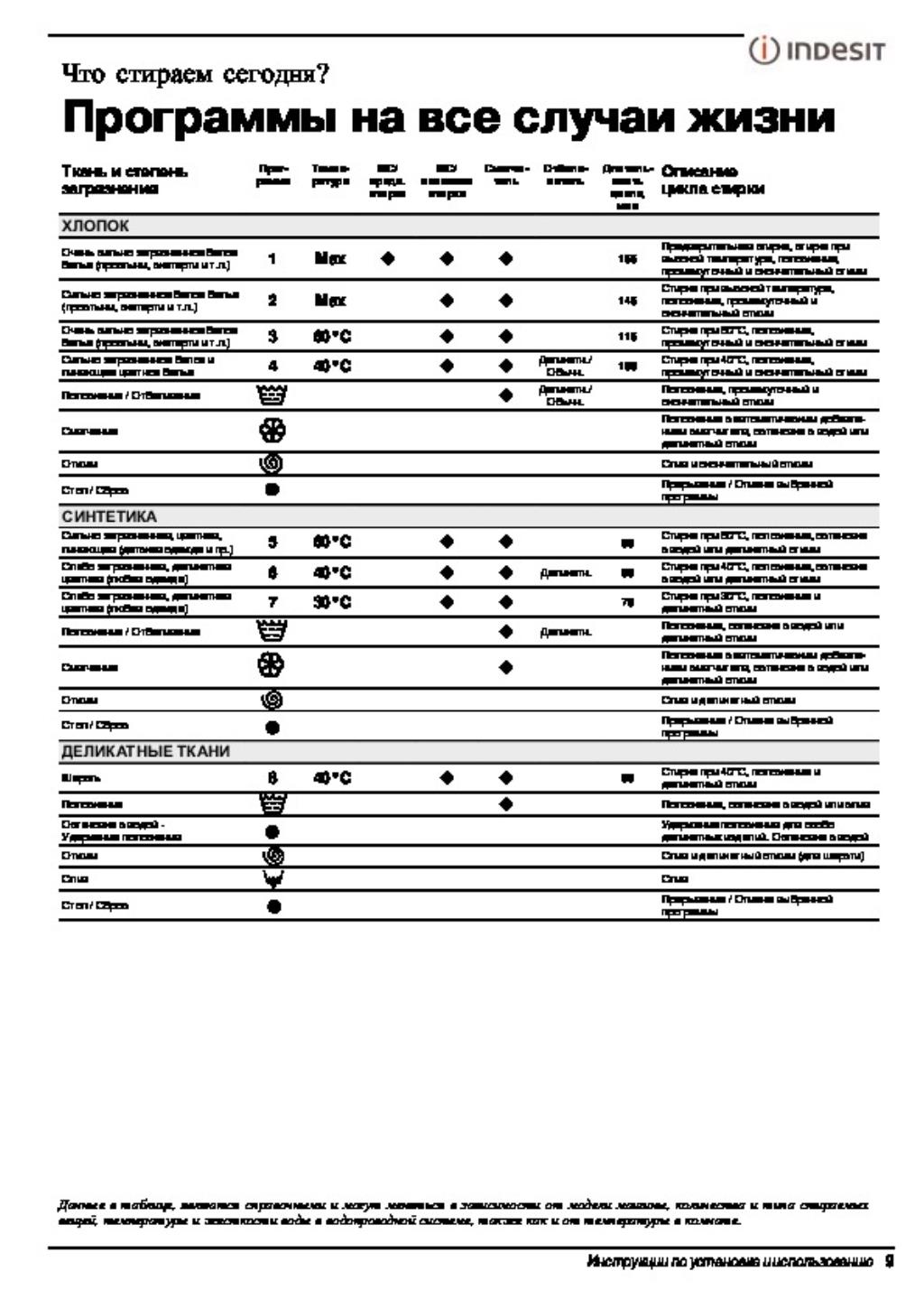 Перед каждой стиркой необходимо выбрать соответствующий режим. Таблица ниже поможет вам определиться с наиболее подходящим вариантом: