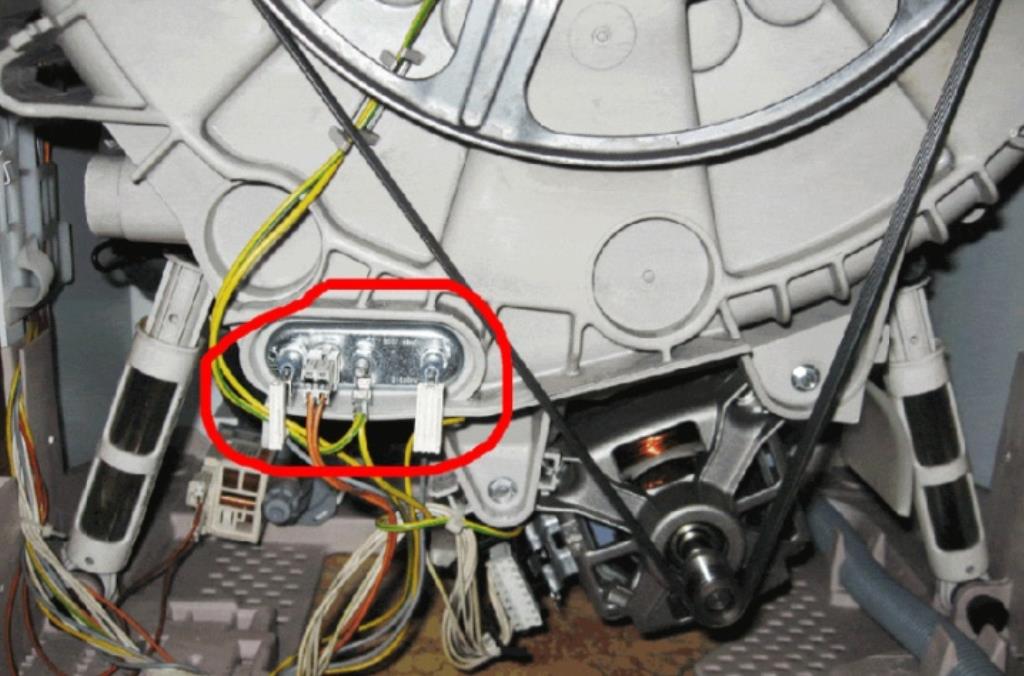 - Отсоедините провода, соединяющие ТЭН с управляющей платой стиральной машины. Убедитесь, что провода не повреждены.