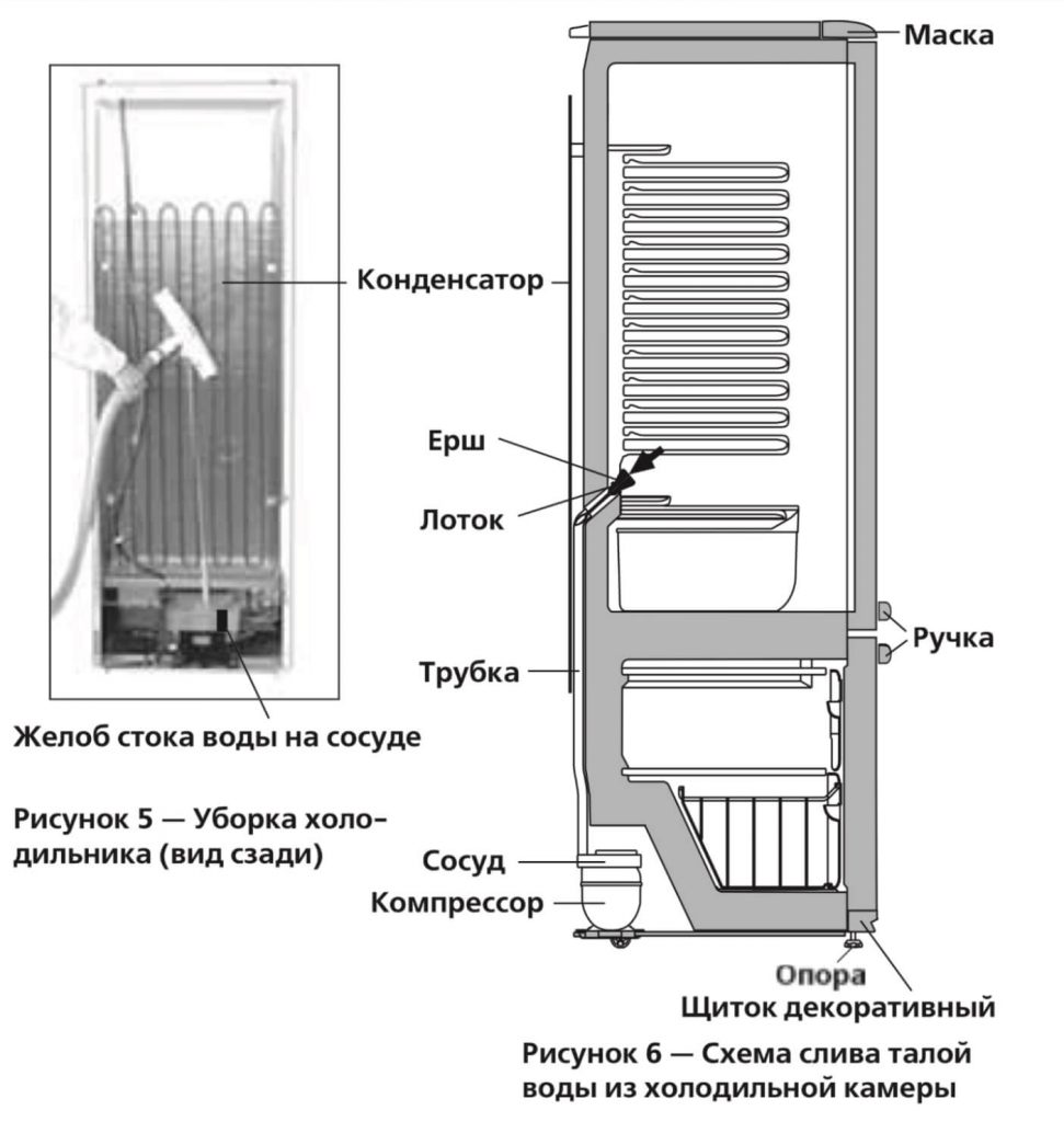 Периодически система отключается и наледь на стенке начинает таять. Капли воды стекают вниз и попадают в специальный желоб. По нему они проходят в поддон, где испаряются из-за тепла, выделяемого компрессором во время работы.