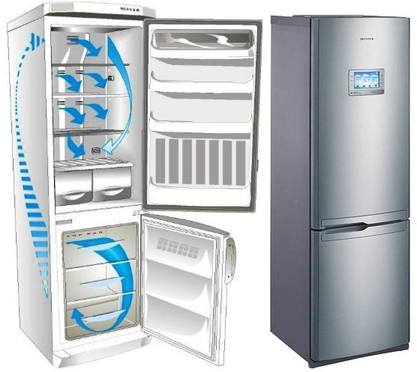 Холодильник No Frost — не требующий разморозки?У многих марок — «Индезит», «Бош», «Самсунг», LG — реализована система Ноу Фрост, что дословно переводится «без инея». Размораживают ли такие холодильники? В магазинах нас убеждают, что нет. На самом деле техника нуждается в оттайке хотя бы раз в год. Принцип работы. В камерах установлены вентиляторы, которые продувают испаритель и равномерно распределяют холодный воздух по камере. Скопившаяся влага не оседает на испарителе, а стекает в специальный отдел, откуда потом выводится в резервуар и испаряется.