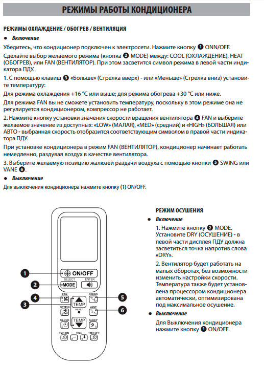 - Дополнительные режимы работы кондиционеров