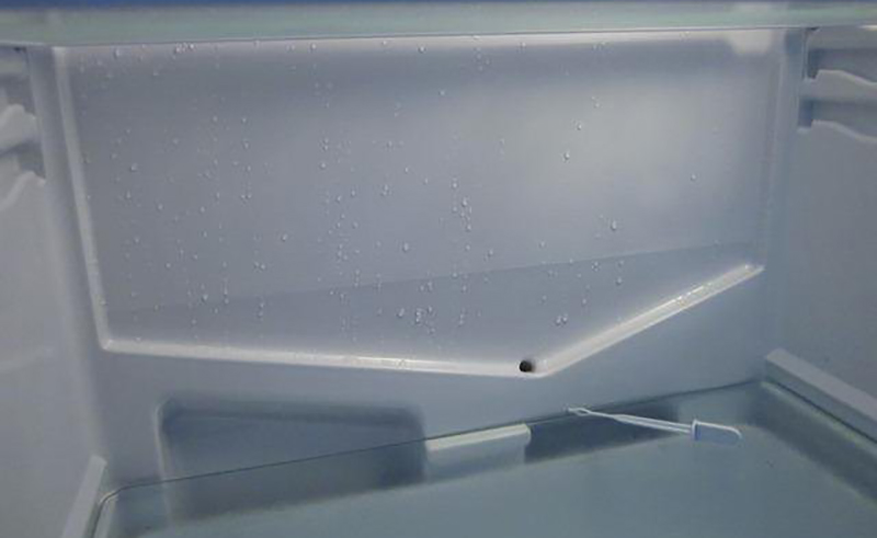 Дренажная система расположена на задней стенке приборов. Если холодильник стоит рядом со стеной, дренаж будет часто засоряться из-за мусора и пыли, которые скапливаются возле дренажного отверстия. При этом засоров в трубках может быть несколько. Вследствие этого затруднится слив воды в резервуар и поддон. Также пыль и мусор попадают в систему через микротрещины, которые появляются в пластиковых стенках элементов дренажа. После этого металл покрывается ржавчиной, что может привести к утечке фреона.