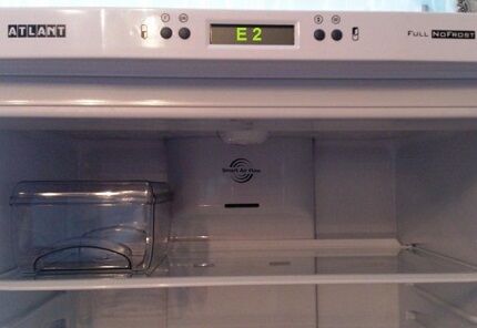 В случае поломки на дисплее холодильника Атлант высвечиваются буквенно-цифровые символы, указывающие на проблему в определенном узле агрегата. Встроенная самодиагностика предусмотрена в моделях с электронной системой управления.
