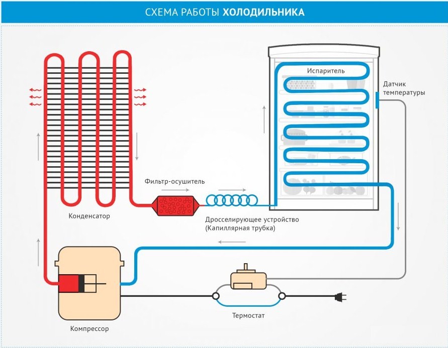 Те пользователи, которым немного знакомо устройство бытовой техники, могут знать, что холодильник — это своеобразный тепловой насос. Грубо говоря, специальным оборудованием тепловая энергия вещества (хладагента) перекачивается из одного места в другое. Говоря о холодильниках, это перекачивание происходит по направлению к морозильнику (или основной камере) наружу.