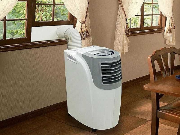 - Мобильные. Такие устройства называют еще моноблоками. Они состоят из единственного модуля и комплектуются гофрированным шлангом воздуховода. Главным отличием от оконных устройств является повышенная мобильность. Агрегаты можно перемещать из комнаты в комнату, многие из них оснащены колесами. При этом устанавливать технику, как правило, необходимо все равно ближе к подоконнику. Моноблок может автоматически испарять конденсат, образующийся при работе, или требовать его удаления