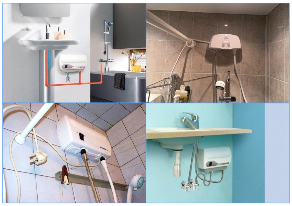 Рис. 9 Примеры монтажа проточных водонагревателей