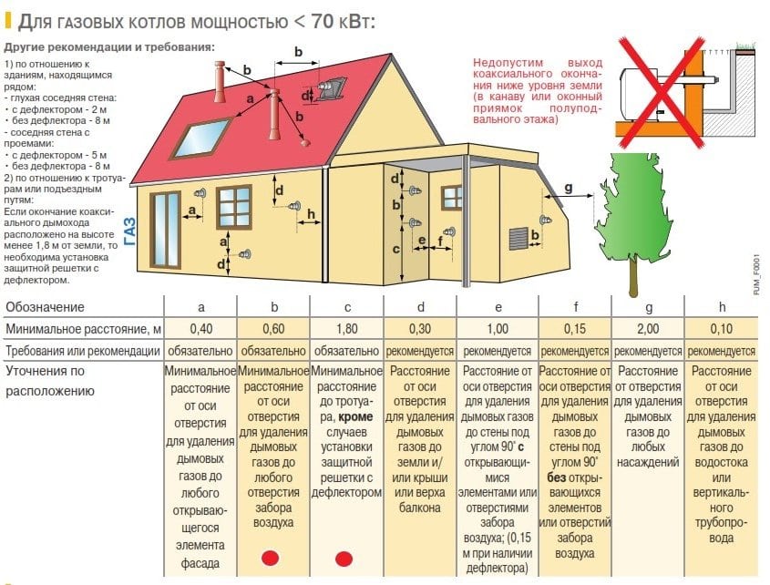• для дымохода в стене пробиваются канал, который необходимо утеплить;• не допускается подача продуктов сгорания в жилые помещения;