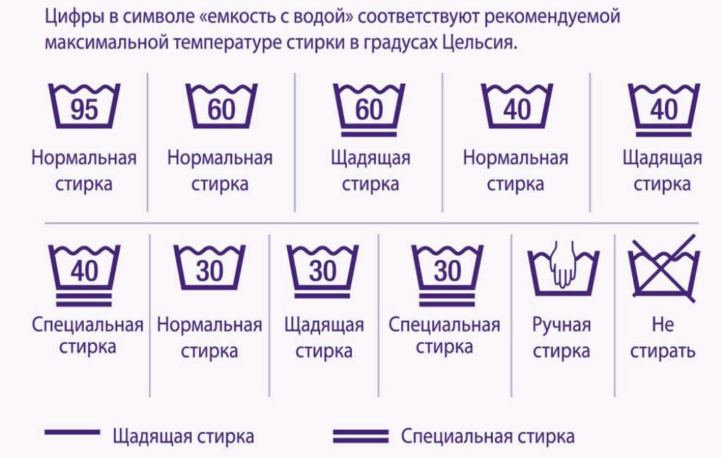 Хлопковые изделия | Стандартный режим | Теплая или горячая | Сушить на прямом солнце или на вентилируемой поверхности |