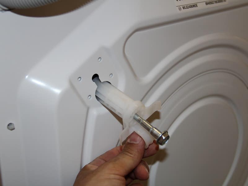 - Необходимо удостовериться в том, что транспортные болты выкручены. Достаточно часто новички, устанавливающие машину самостоятельно, попросту забывают о них.