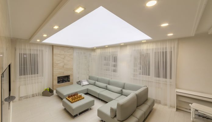 Варианты подсветки внутри Подсветка изнутри выглядит эффектно, так как мягкий свет излучает все полотно натяжной конструкции. Оригинальная разновидность