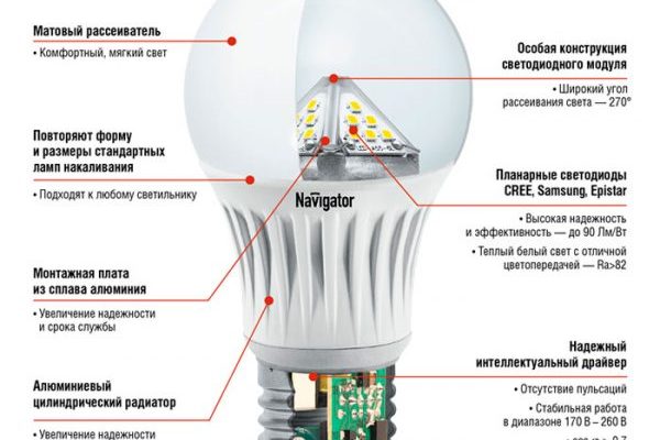 Особенности светодиодных ламп LED-лампочки имеют несколько более сложное внутреннее устройство в сравнении с обычными лампами накаливания.