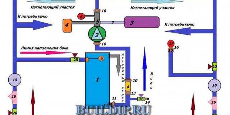 Схема водоснабжения дома с накопительным баком Представленная схема легко интегрируется в существующую трубную разводку как в водоснабжение с одним центральным