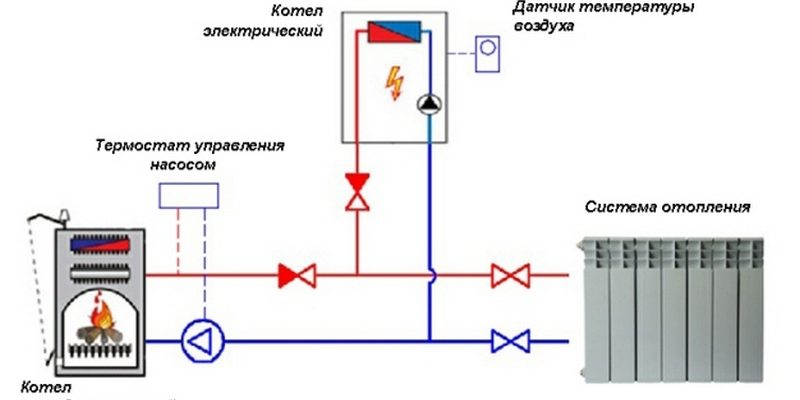 Обвязка твердотопливного и газового котла (электрокотла) Данная обвязка актуальна и пользуется спросом у жителей загородных домов. Она позволяет организовать