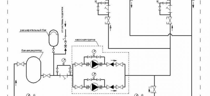 Схема подключения чиллер-фанкойл Конструктивно система кондиционирования чиллер фанкойл состоит из четырех основных узлов, и выглядит следующим образом