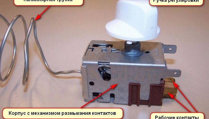 Термостат (терморегулятор) Термостат холодильника выполняет запуск и остановку компрессора холодильника. Запуск выполняется при повышении температуры до