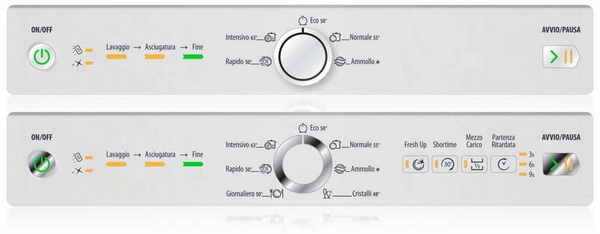Примеры панелей управления Новые панели управления ПММ Ariston со светодиодами Более ранние панели управления ПММ Ariston со светодиодами Новые панели