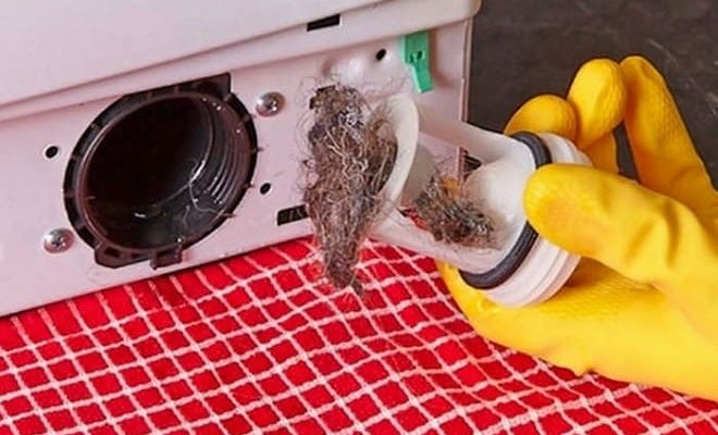Любая стиральная машина, независимо от марки, имеет фильтр, защищающий дренажный насос от попадания посторонних предметов. В процессе эксплуатации он засоряется