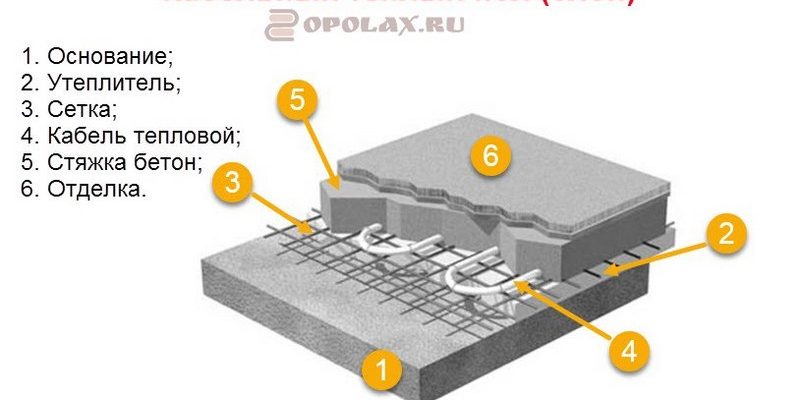 Особенности укладки греющего кабеля Греющий кабель укладывается на основание пола спиралью. Спираль имеет две размерные характеристики: шаг ниток и длину ниток.