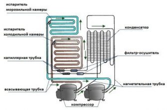 Устройство типового холодильника Компрессор своим давлением