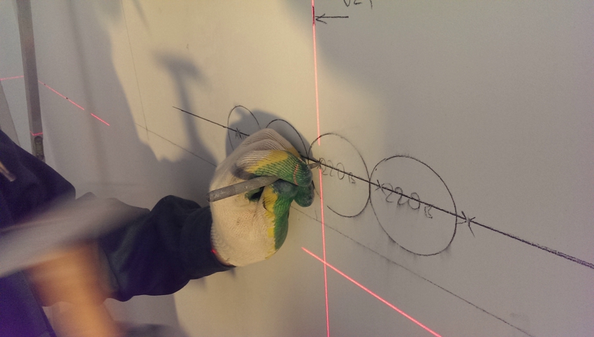 Перед началом работ на стену наносится разметка