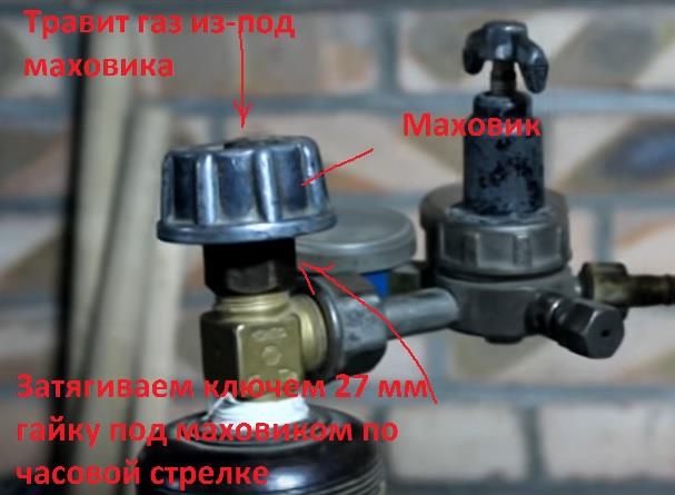 - спустить остатки газа, для чего медленно и плавно открутить маховик крана;