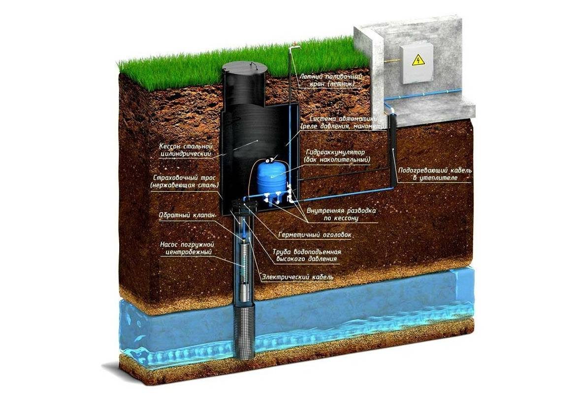 - Установка гидроаккумулятора и автоматики в кессоне.