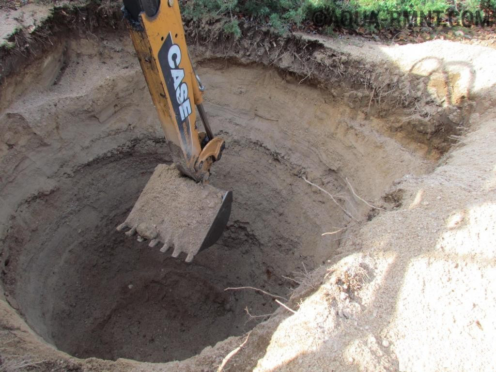 - Обратная засыпка песком и ранее вынутым грунтом.