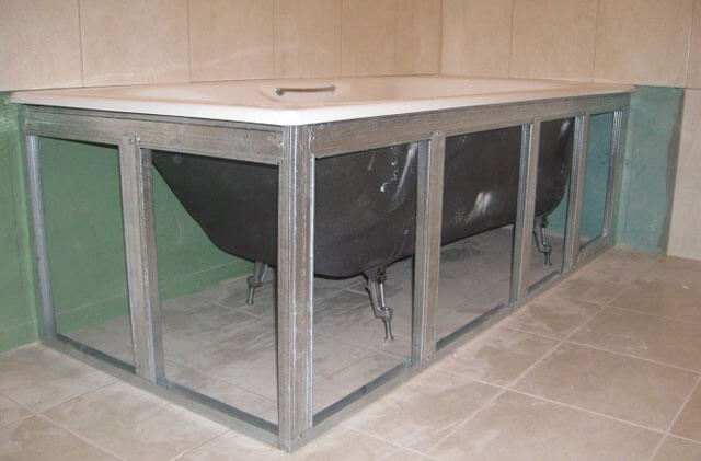 Для установки большинства экранов требуется сооружение каркаса по периметру ванны. Каркас обычно собирают из алюминиевых профилей, реже – из деревянных брусков.