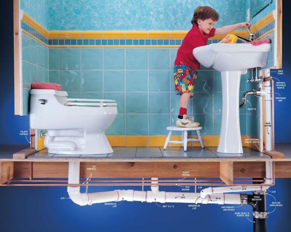 Важно! Установка труб в ванной комнате – важный и технически сложный процесс, доверить который лучше профессиональному сантехнику. Ведь самый незначительный огрех, допущенный при прокладке труб, может привести к некорректной работе всей системы – засорам канализации, застоям сточных вод, уменьшению напора.