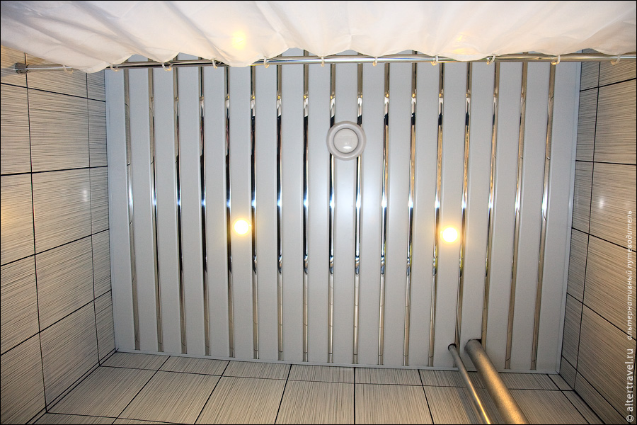 Потолок в ванной комнате из пластиковых панелей с вытяжкой